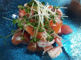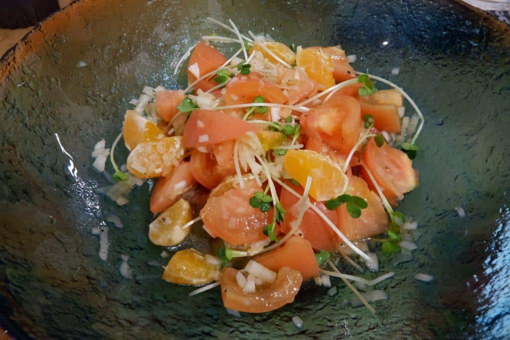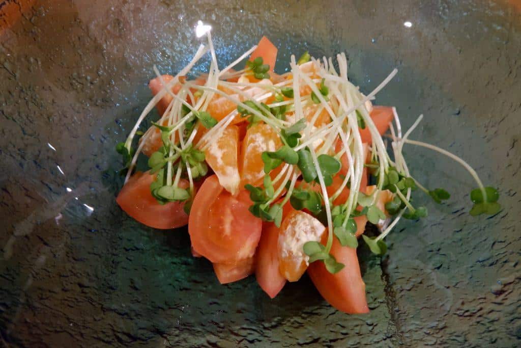 さっぱり、爽やかなサラダです。クセのない味でどんどん食べられます。トマトもみかんも具が大きく、満足感あり。