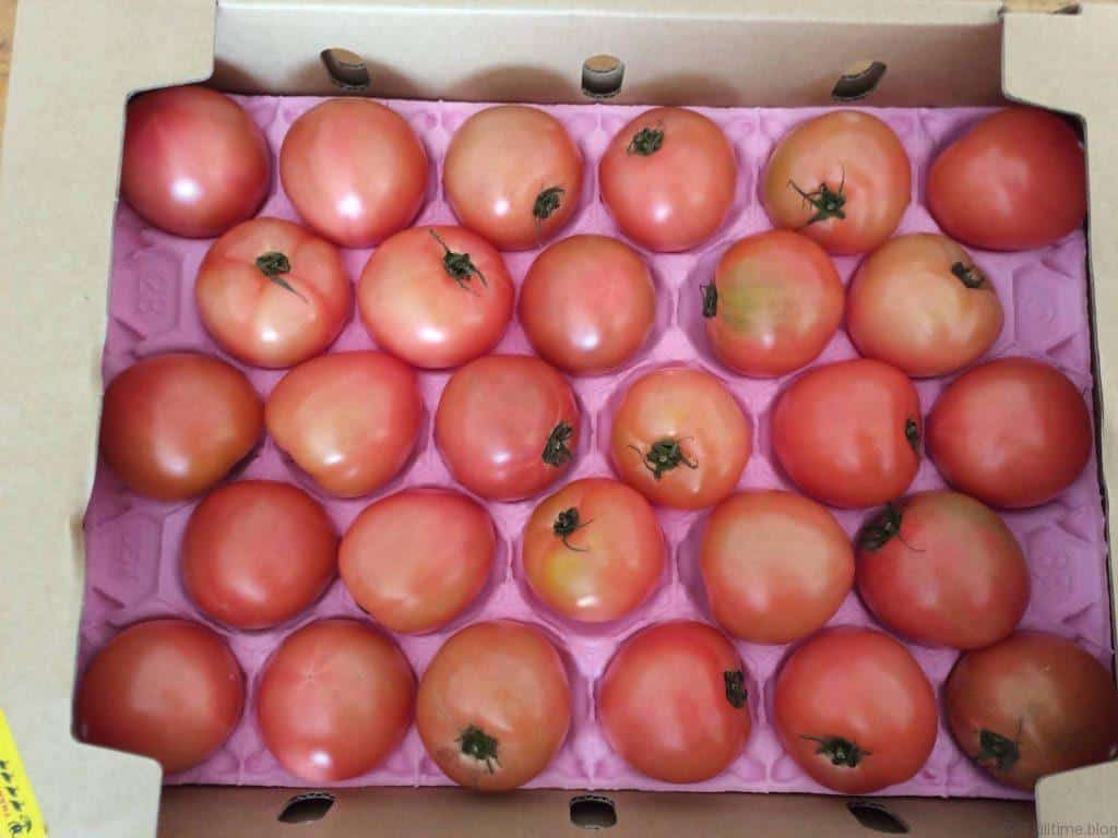 トマトは近くの業務スーパーで1箱500円で売ってたのよ。やっす!!