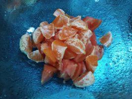 みかんが甘いので、ソースには甘みを入れないぐらいでちょうど良い気がします。