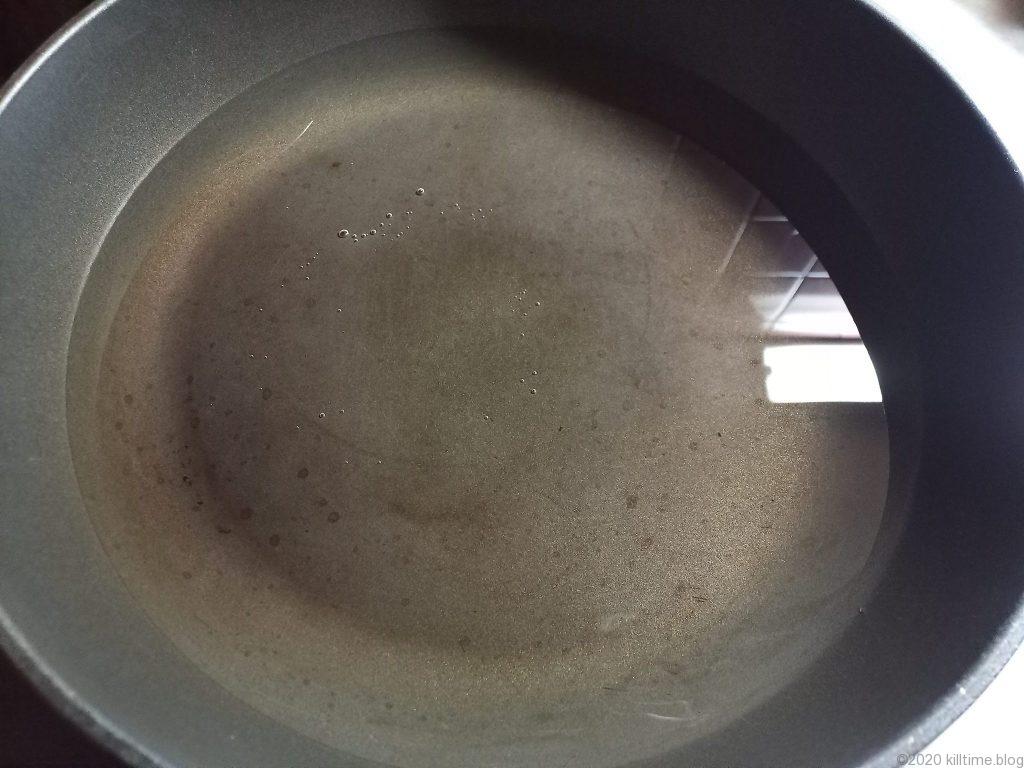 - フライパンで湯を沸かす