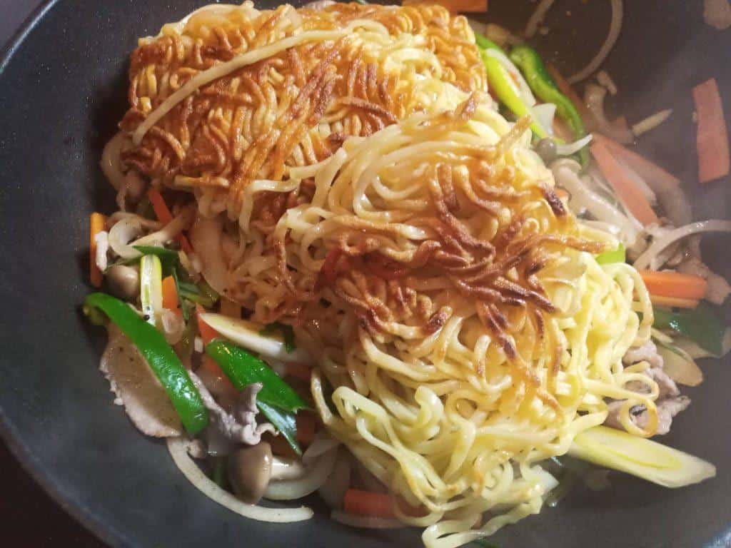 おこげを作るんですが、その際にフライパンや麺を動かしてしまうと、良い焦げ色が付きません。