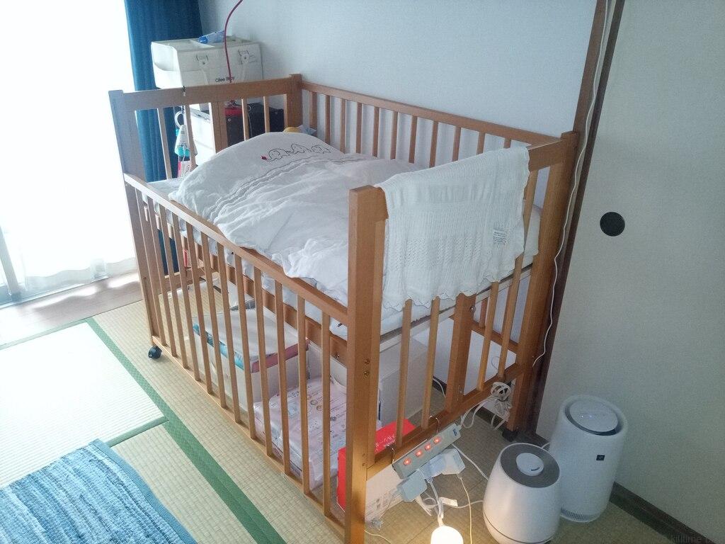 低いタイプのベッドだと犬が柵の隙間から手を伸ばして爪で引っ掻いてしまったり、赤ちゃんの顔をペロペロと舐めてしまったりする可能性がある。その点、ハイベッドにすれば物理的に届かないので立派な対策になる。ということで、我が家ではそのようにしている。