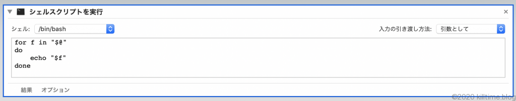 先程紹介したAutomatorではワークフロー上でシェルスクリプトを実行することもできます。