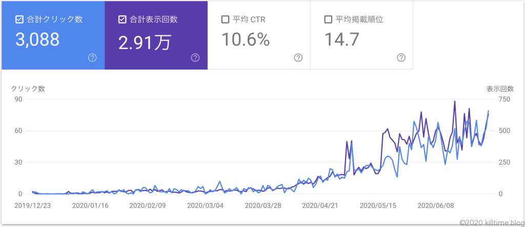 アドセンスに関して言えば、1000円のうち500円ぐらいは6月の収益です。
