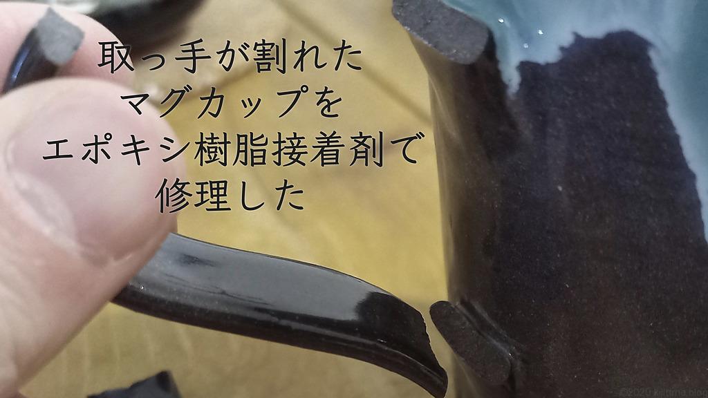 エポキシ樹脂接着剤は口の触れるところには使っちゃダメらしいけど、今回の修理箇所は取っ手なのでセーフ。