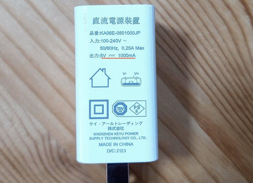 5V-1,000mA(=1A)となっている。必要十分のはずだ。