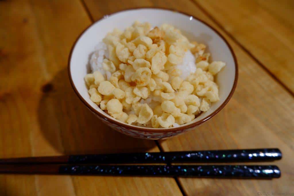なんか私が使った天かす、普通のんじゃなくてイカ粒が入ってる天かすらしいのコレ。
