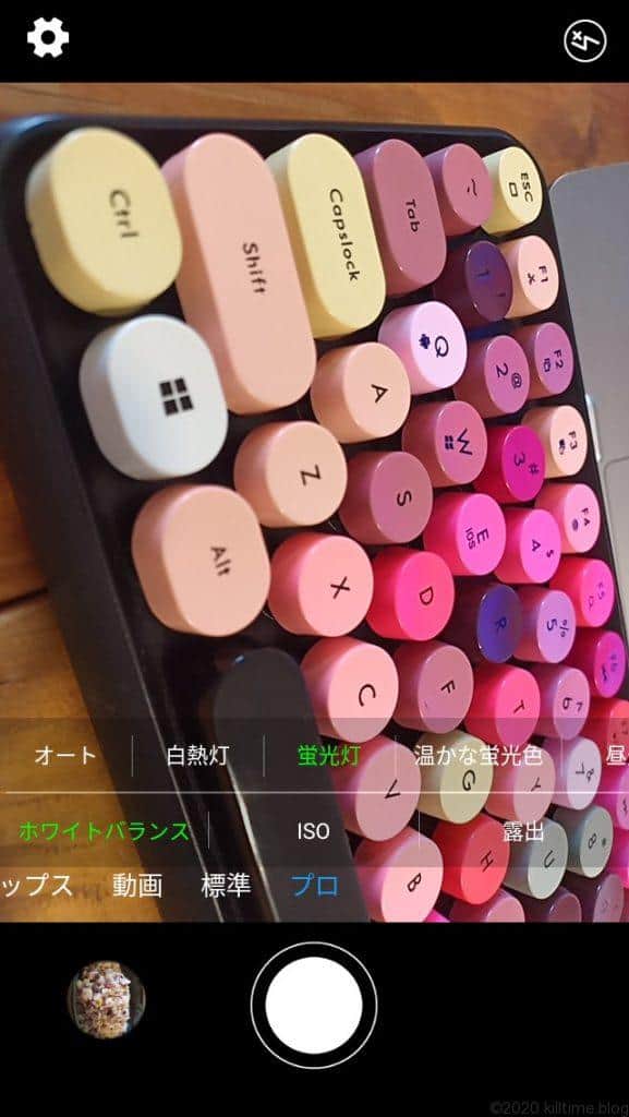 - 標準モードではなくProモード、ホワイトバランスを蛍光灯モードにすると、視界の色合いに近い画が撮れる。かなりキレイに撮影できる。